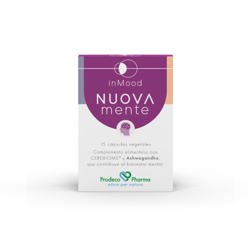 Complemento alimenticio en cápsulas con extracto de Ashwagandha y a base de Cerebiome®, una mezcla probiótica innovadora que actúa sobre el eje intestino-cerebro y ayuda a tu mente a librarse del cansancio, la aprensión y la apatía.