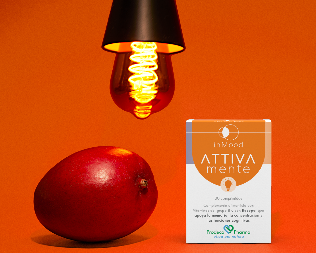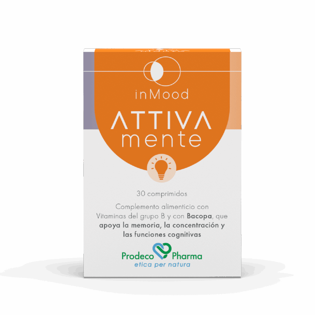 inMood ATTIVAmente es un complemento alimenticio en comprimidos bicapa de liberación controlada a base de Aronia, Mango y Vitaminas del grupo B procedentes del trigo sarraceno para apoyar el funcionamiento normal del sistema nervioso (B1, B2, B6, B12), en sinergia con la Colina y la Bacopa, para apoyar la memoria y las funciones cognitivas.