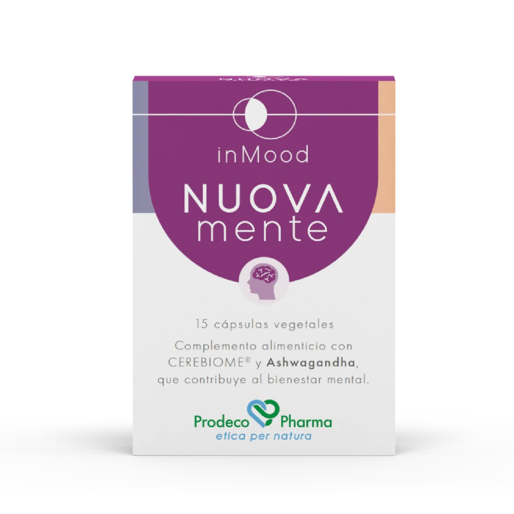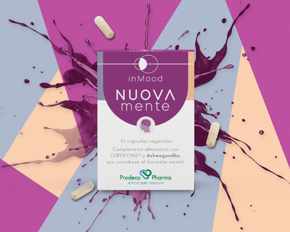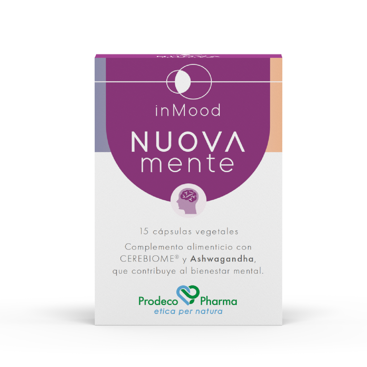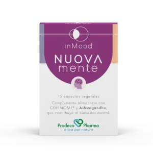 inMood NUOVAmente es un complemento alimenticio en comprimidos con Ashwagandha – que contribuye a la relajación y al bienestar mental – y Cerebiome®, una mezcla probiótica que favorece el equilibrio de la flora intestinal.