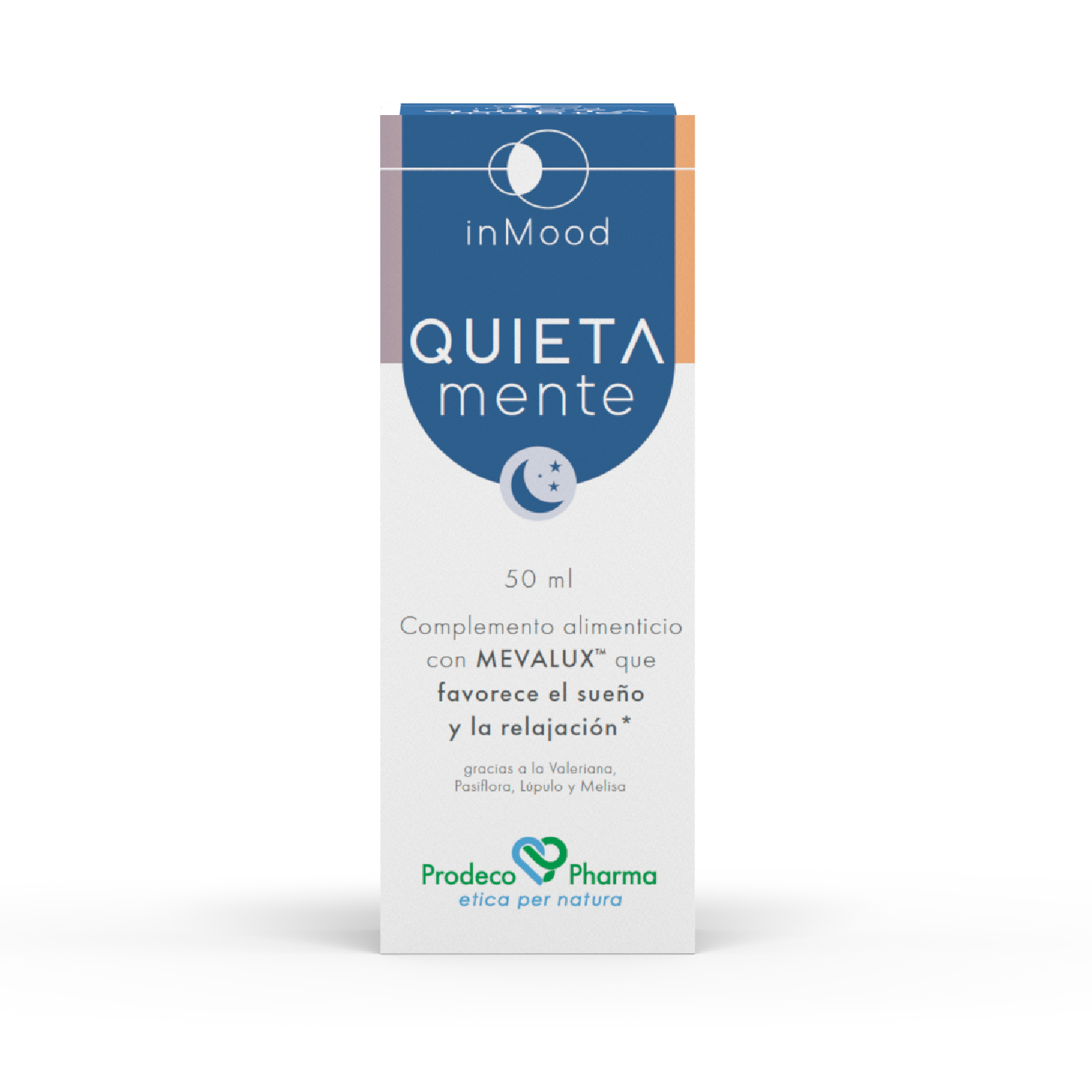 inMood QUIETAmente es un complemento alimenticio en gotas con MEVALUX™, una mezcla exclusiva de extractos vegetales que actúan en sinergia para ayudarte a dormir mejor.